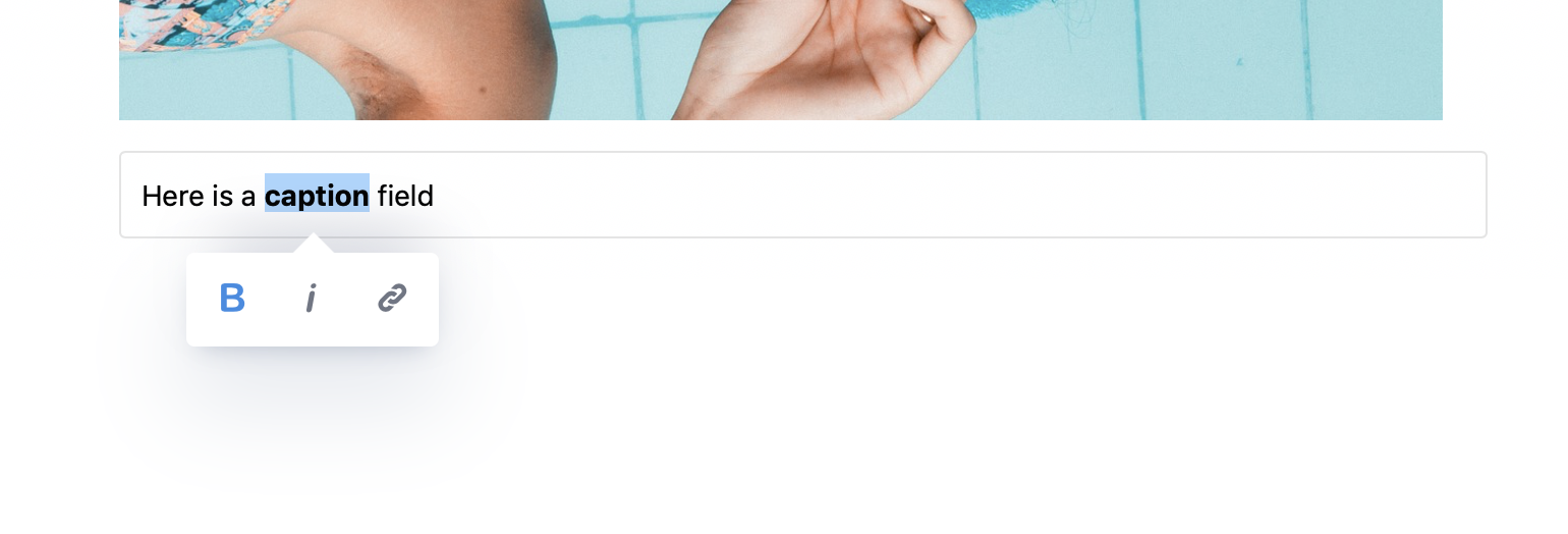 After that, try to select some fragment of a caption field — you will see an Inline Toolbar with all available Inline Tools.