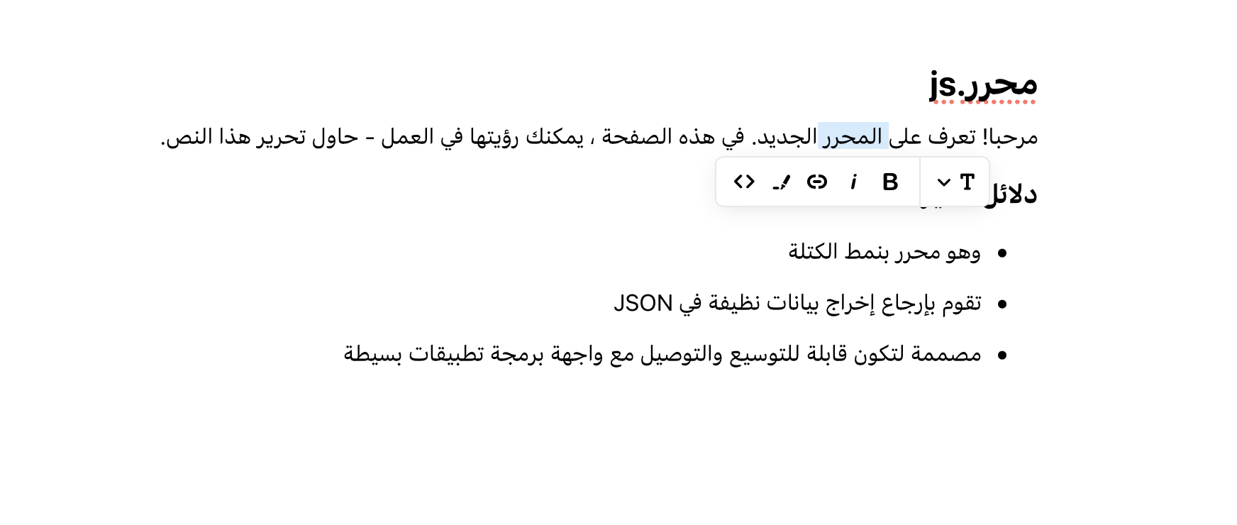 Editor.js also provides a support of right-to-left mode. It could be enabled by passing the direction rule to the i18n config.